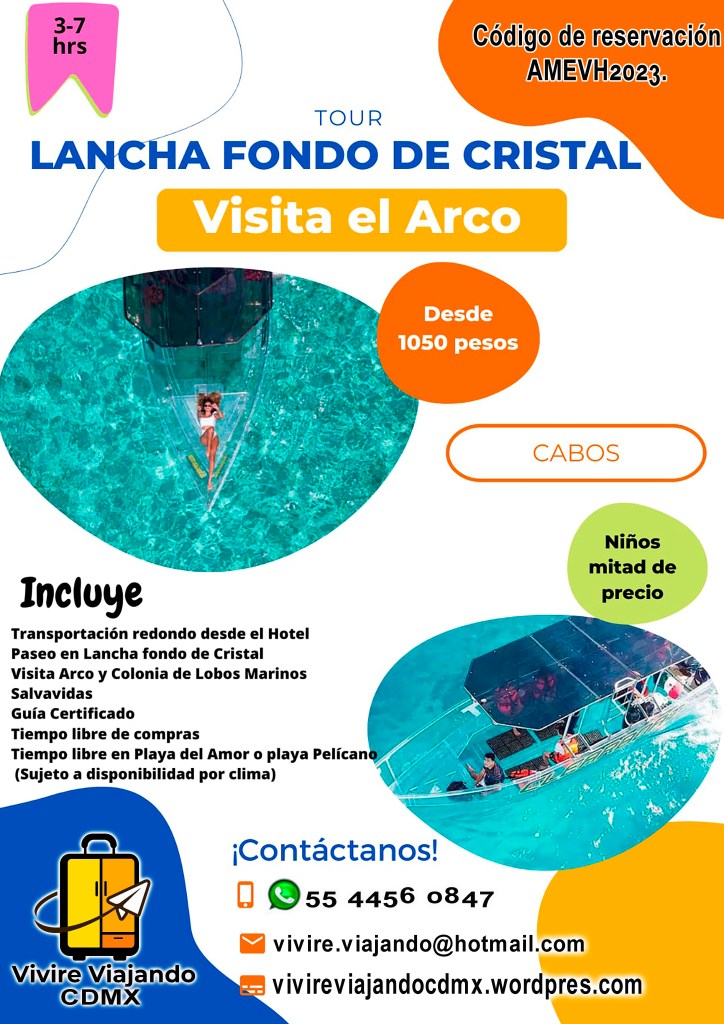Recorrido en Los Cabos, visitarán el famoso Arco justo en la punta de la península en una lancha transparente única y conocerán la colonia de lobos marinos en las playas de la ciudad.